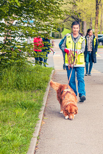 Auf der Suche nach einer spannenden Beschäftigung für mich und meinen damals 1/2-jährigen Toller-Rüden Flake besuchte ich im Herbst 2016 einen Trainingsabend bei einer Mantrailing-Gruppe. Ich war sofort fasziniert von der Leistung der Hunde und dem Zusammenspiel der Mensch-Hund-Teams. Bereits eine Woche später begann ich mit dem Aufbautraining. In den wöchentlichen Gruppentrainings, Seminaren und Tagestrainings entwickelte sich Flake zu einem hochmotivierten, leistungsstarken und zuverlässigen Suchhund. Seit Herbst 2022 leite ich zusammen mit Bruno Hostettler eigene Trainingsgruppen im Raum Aaretal-Bern-Fribourg. Durch die Anfang 2024 absolvierte sechsmonatige Ausbildung zur zertifizierten Mantrailing-Instruktorin MTZ konnte ich mein theoretisches und praktisches Wissen im Mantrailing erweitern und vertiefen. Es bereitet mir grosse Freude, mit Menschen und Hunden zusammenzuarbeiten. Diese Begeisterung und mein Wissen gebe ich in den Gruppenkursen gerne weiter.